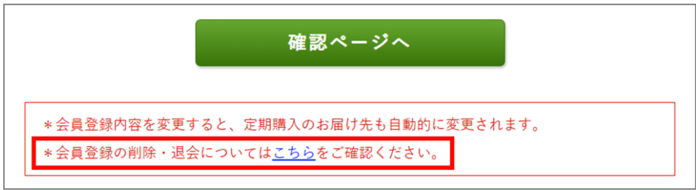 ※なお、 マイページ内で会員登録の削除(退会)を行っていただいても、非会員としてお客様の定期便は「継続中」となります。