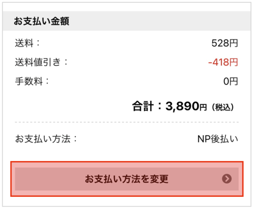 2. 定期購入情報編集にあるお支払い金額の部分から「お支払い方法を変更」をクリックしていただく