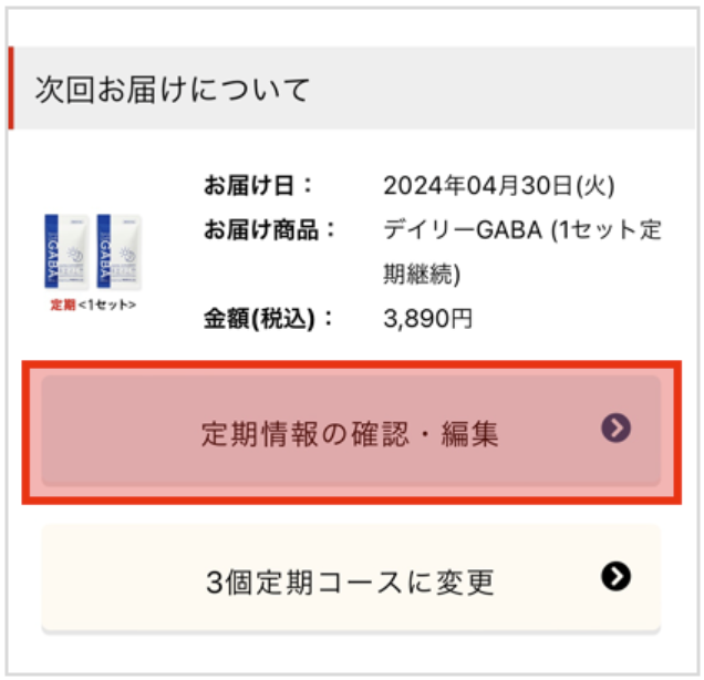 1. 変更したい定期購入情報の「定期情報の確認・編集」をクリックしていただく